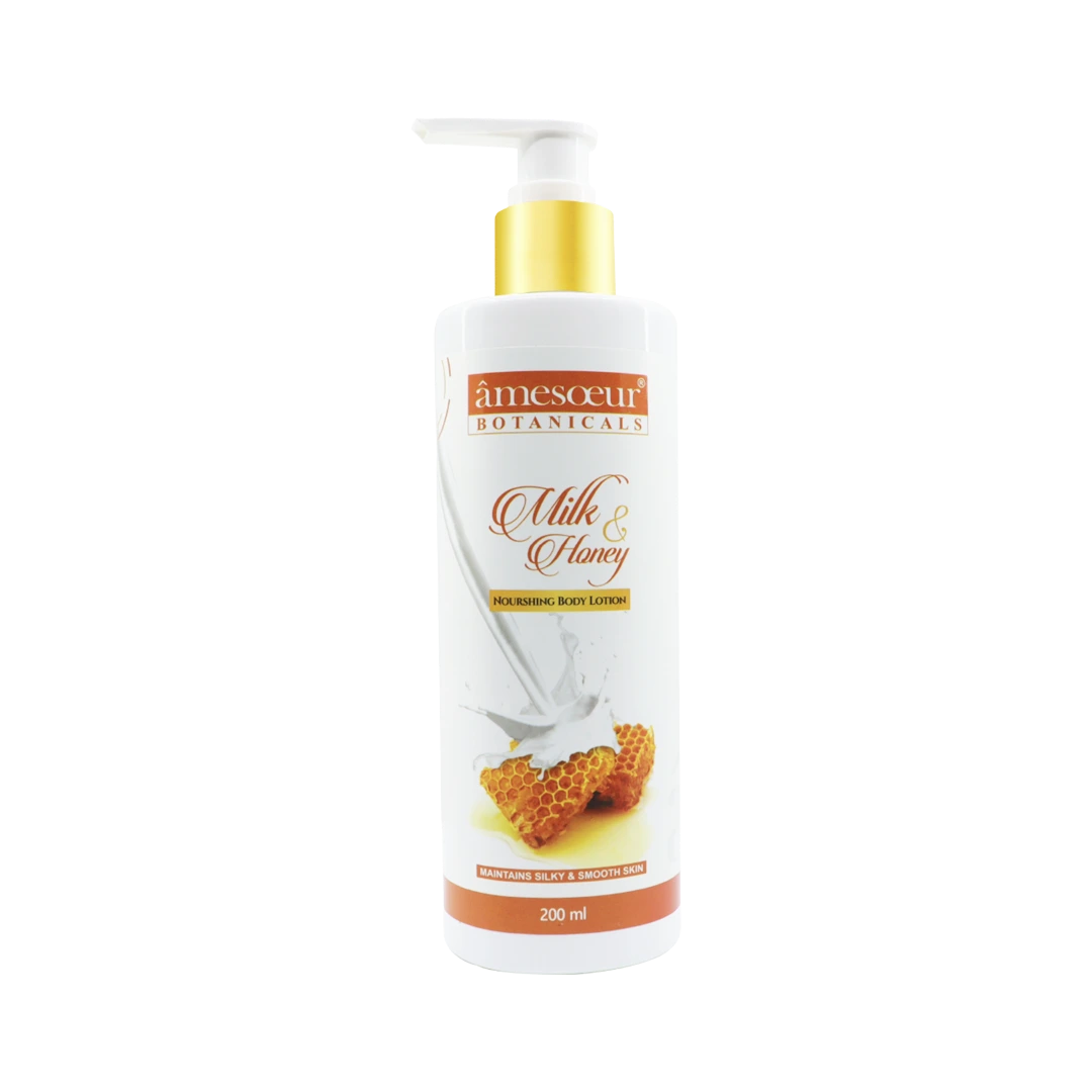 The amesoeur Milk and Honey Body Moisturizer enriched with Vitamin-E and honey extract. Honey also has anti-inflammatory properties that can aid with skin conditions such as acne or psoriasis. Honey improves the texture and appearance of skin thus makes moistened and healthy skin.